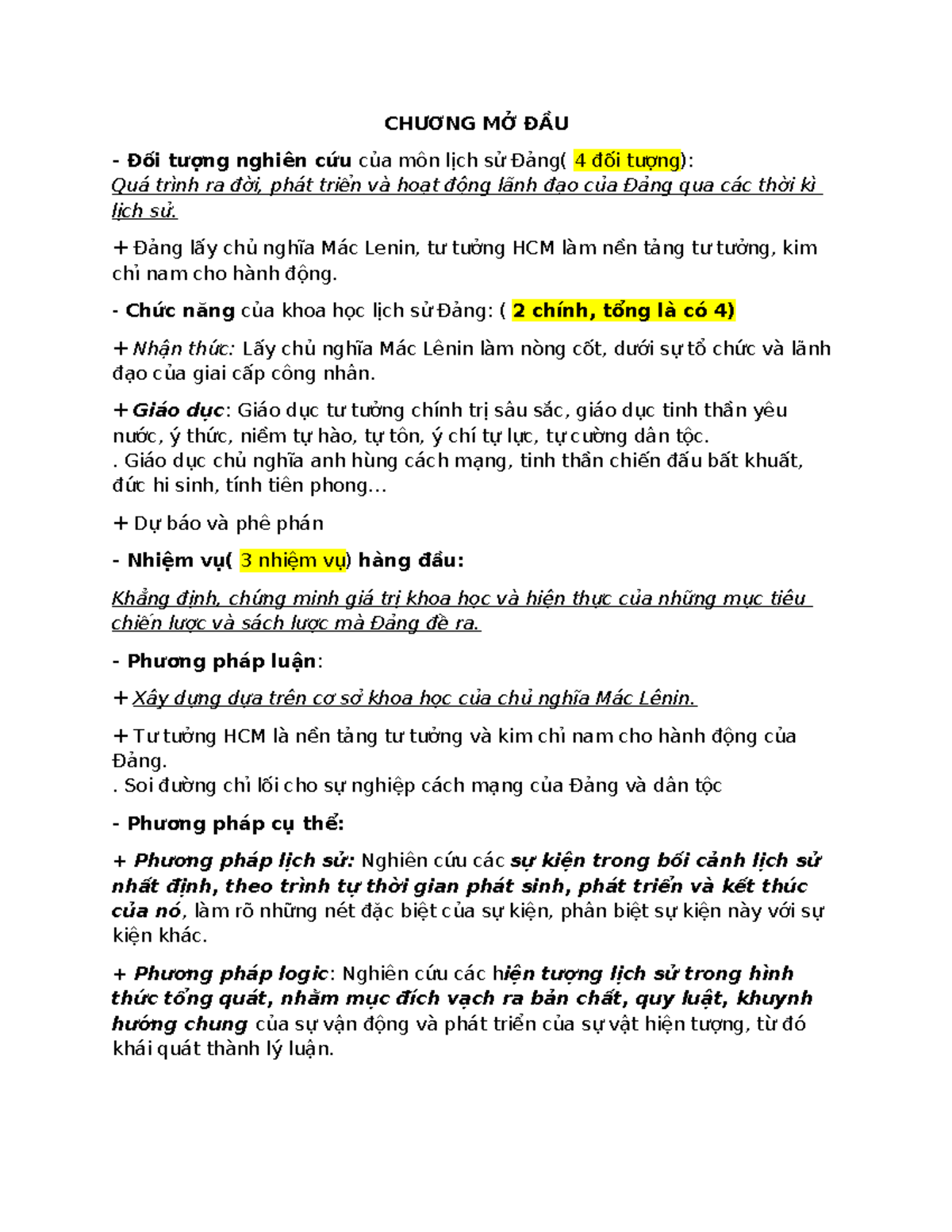Ôn Tập Lịch Sử Đảng Cộng Sản Việt Nam - CDDDDD - Studocu