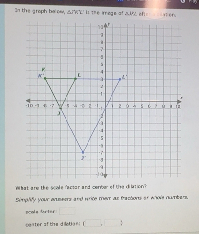 Solved: Play In the graph below, J'K'L' is the image of JKL Simplify ...