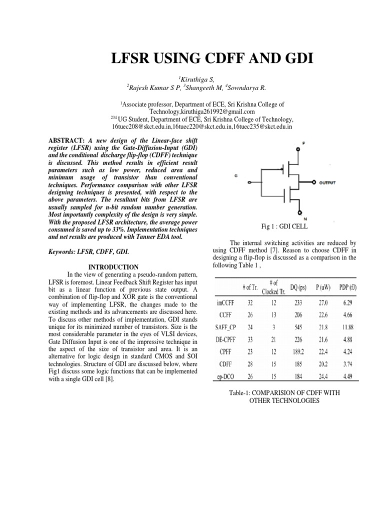 LFSR Using Gdi and CDFF PDF | PDF | Logic Gate | Computer Hardware