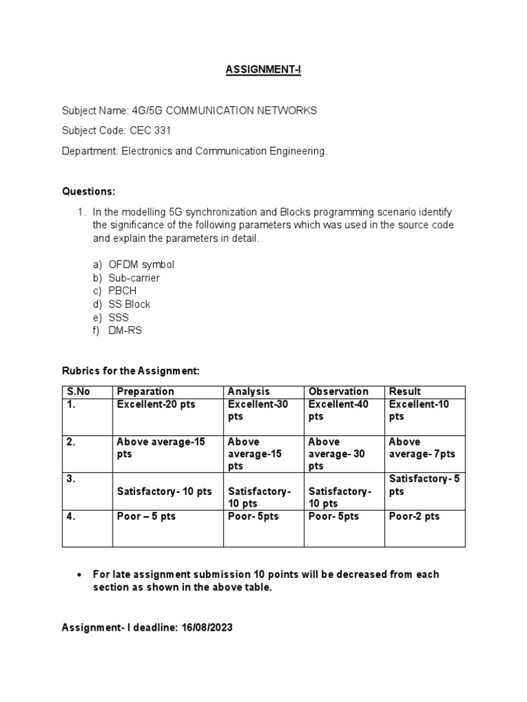 CEC 331 4G/5G Networks Assignment I | PDF