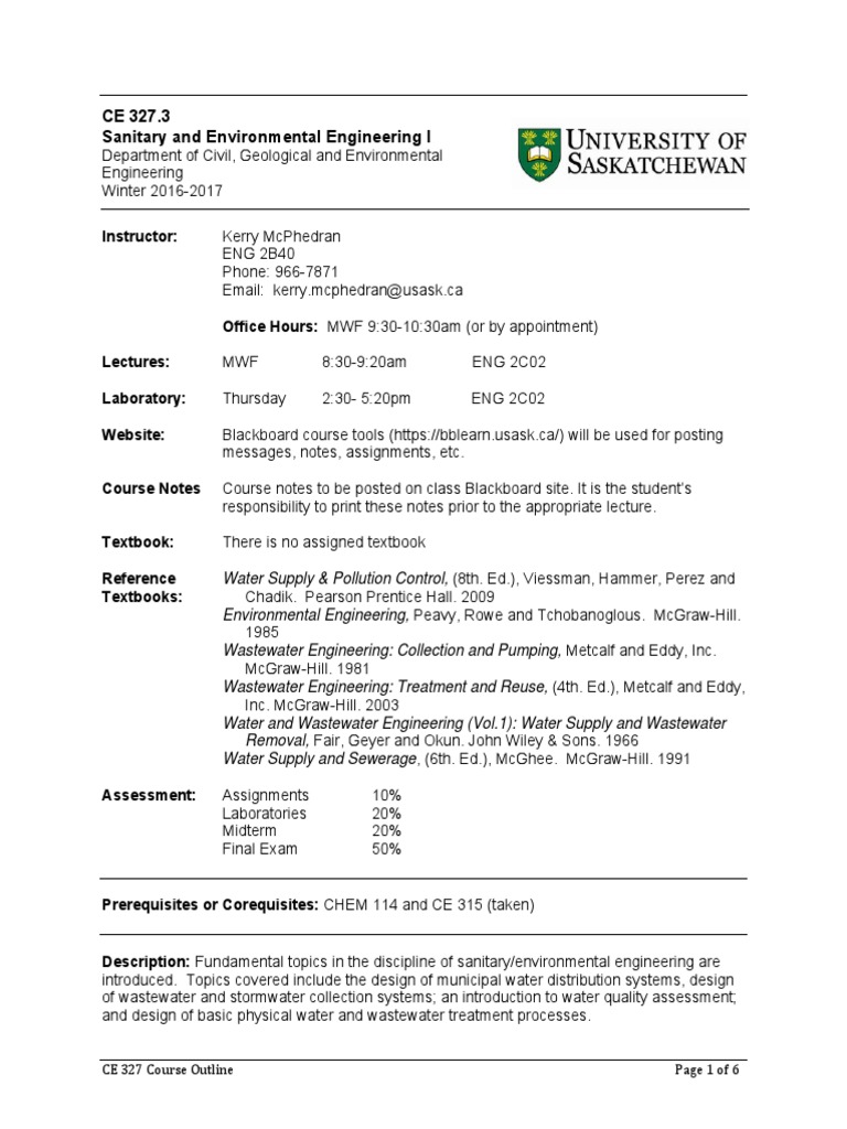 CE327 Course Outline 2017 | PDF | Water Supply Network | Sanitary Sewer