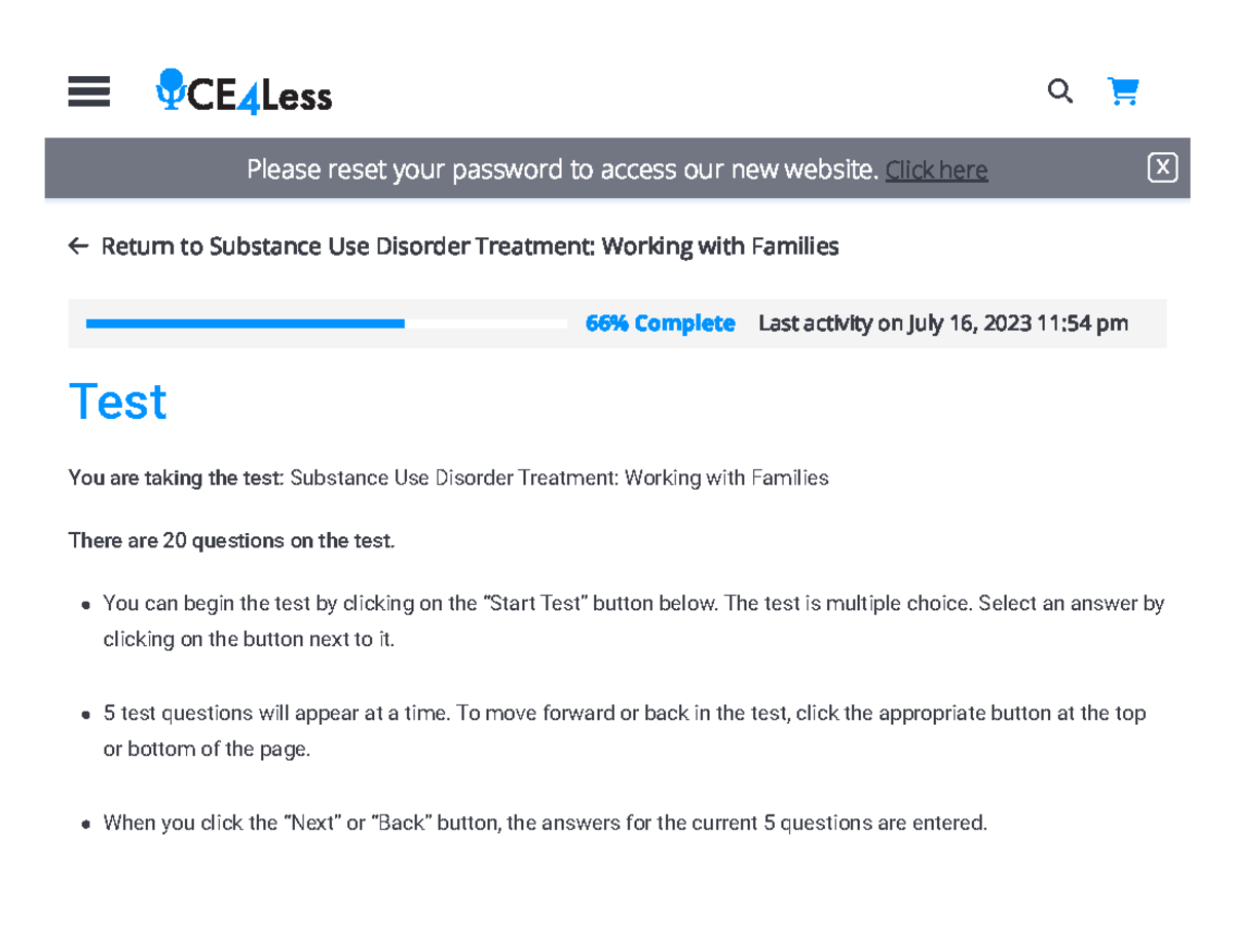 Test 22 - CE4Less: SUD Treatment with Families Exam Guide - Studocu