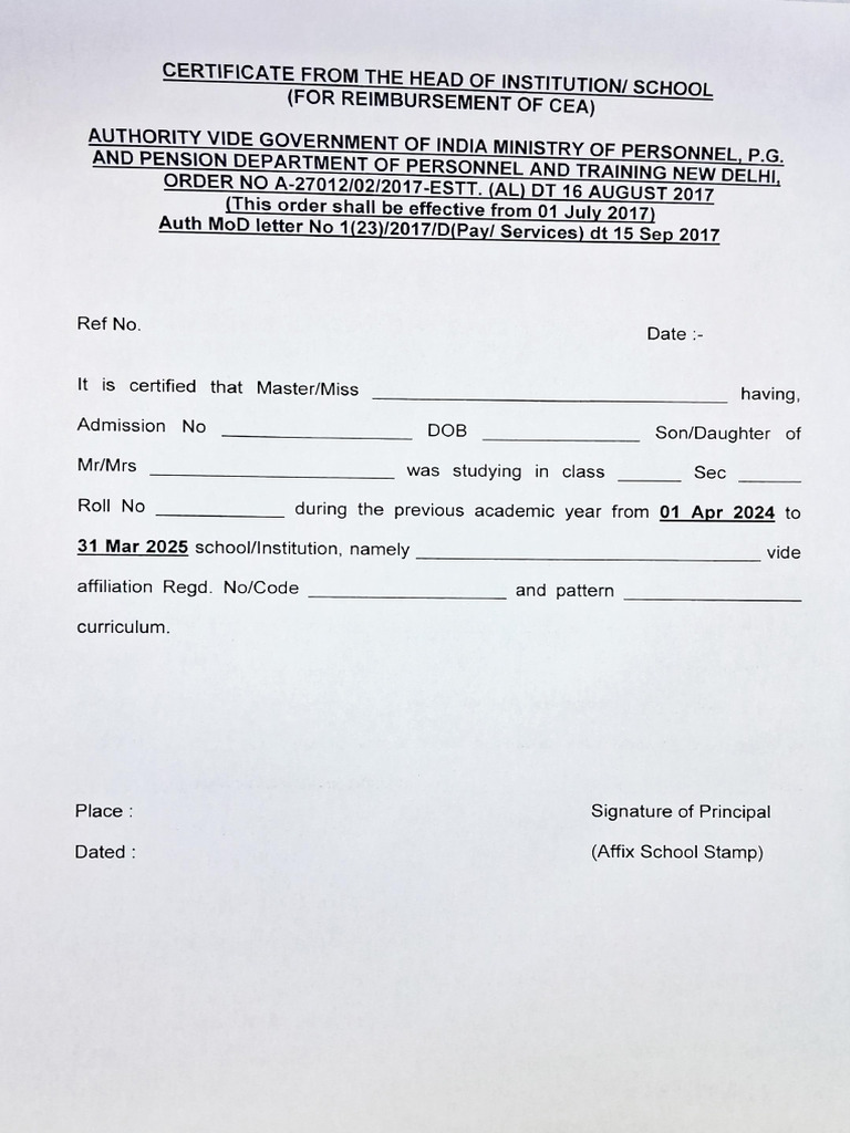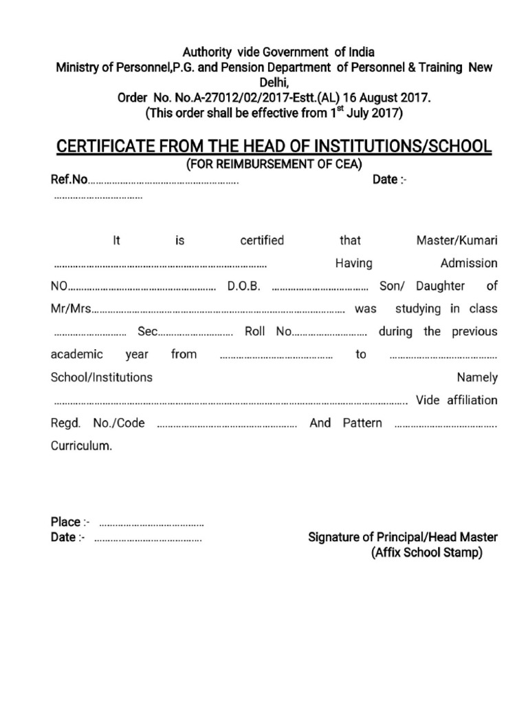 CEA Proforma and Guidelines for the payment of Children Education ...