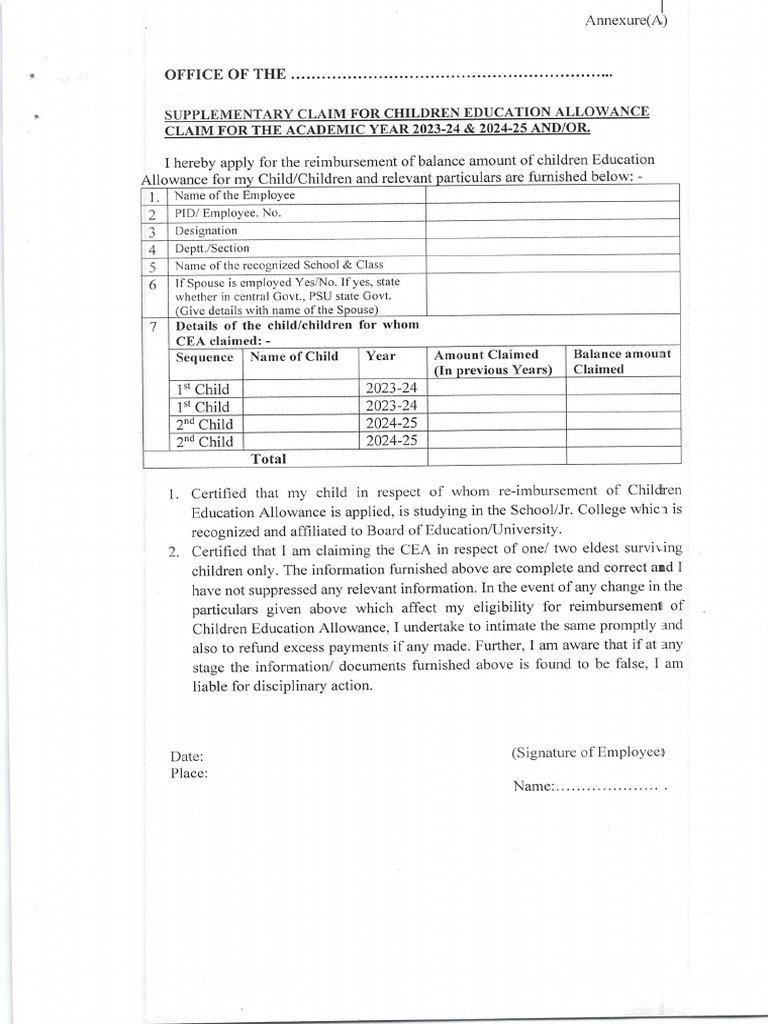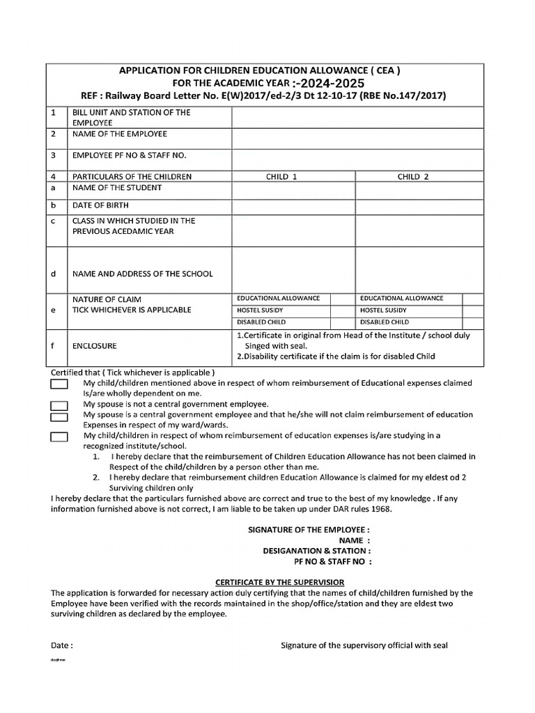 [PDF] Children Education Allowance Form – Download Here – Govtempdiary