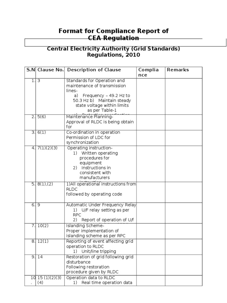 (262500933) CEA Regulation Compliance Format Grid Standard1 | PDF ...