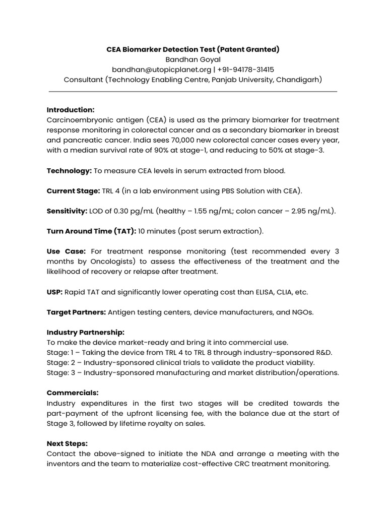 CEA Biomarker Detection Test | PDF