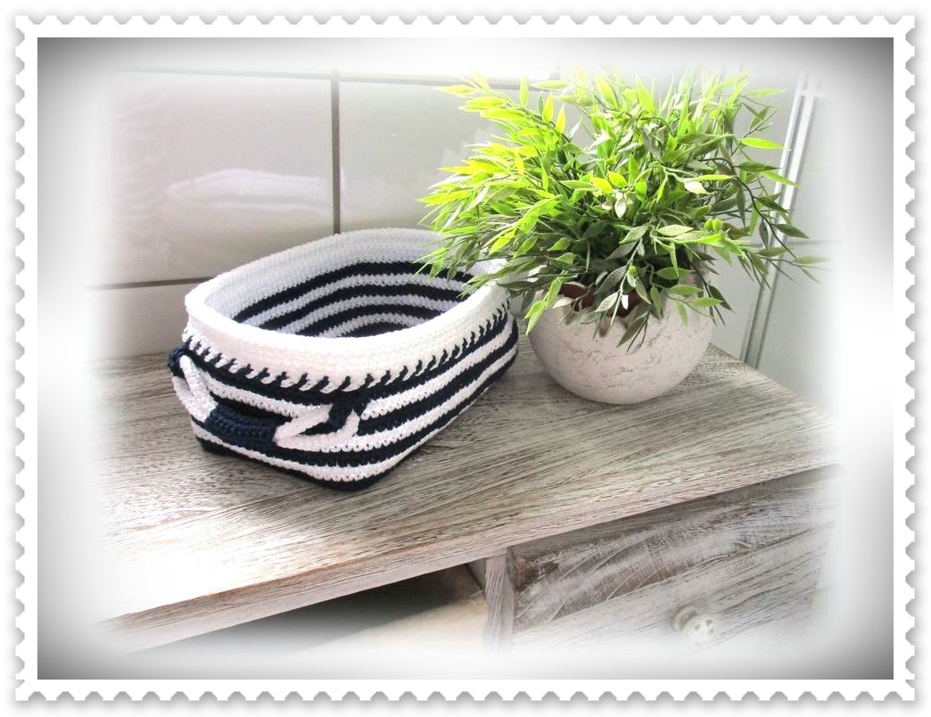 Gehäkelter Streifenkorb – maritimes Utensilo