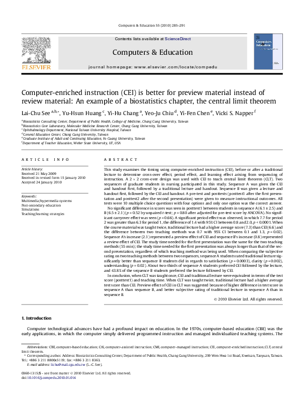 (PDF) Computer-enriched instruction (CEI) is better for preview ...