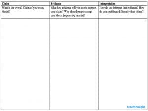 Claim, Evidence, Interpretation CEI Paragraph Pre-Write/Graphic Organizer