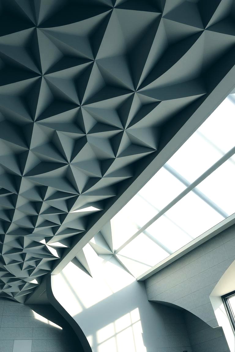 Geometric Ceiling Design with Triangular Panels and Recessed Lighting ...