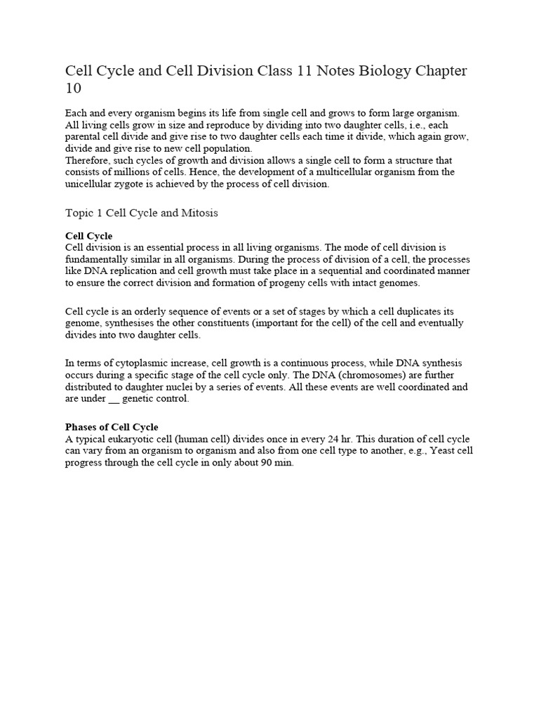 Biology class 9 chapter 5 cell cycle notes – Artofit