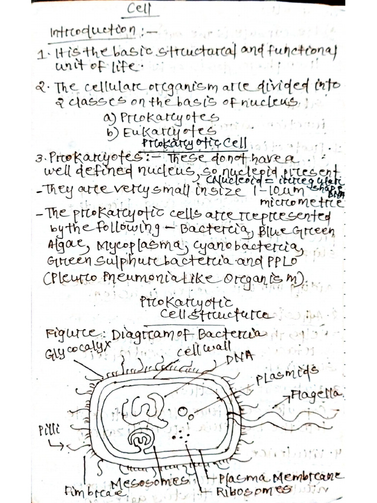 Cell Biology Notes Chapter 1 - Chapter 1 - Cells : The Fundamental ...