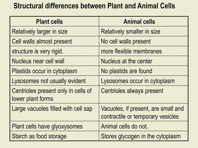 Table Comparing The Structures of Plant, Animals and Bacterial Cells ...