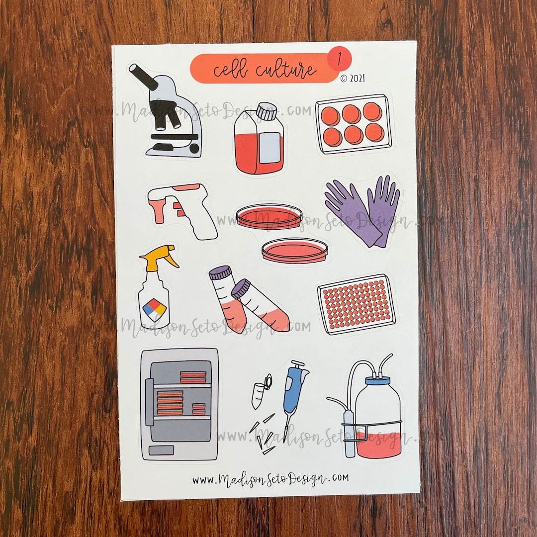 Cell Culture Stickers Set, Molecular Biology, Biochemistry, Pharmacy ...