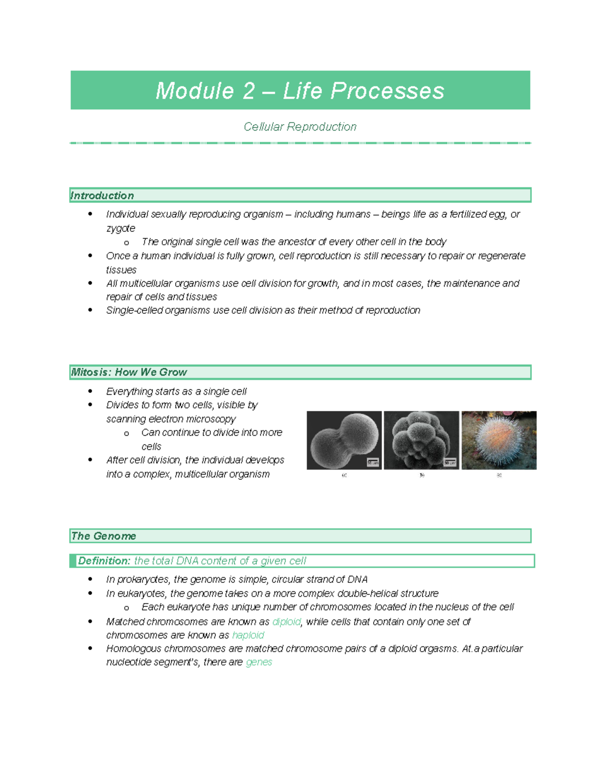 Basic Biology - Cellular Reproduction - Module 2 – Life Processes ...