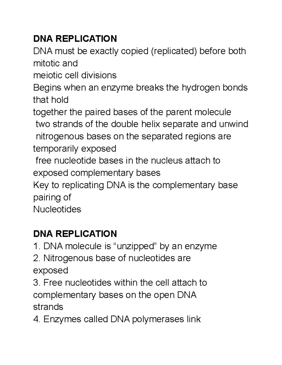 BIOL 1345 Module 8 Cell Reproduction - DNA REPLICATION DNA must be ...