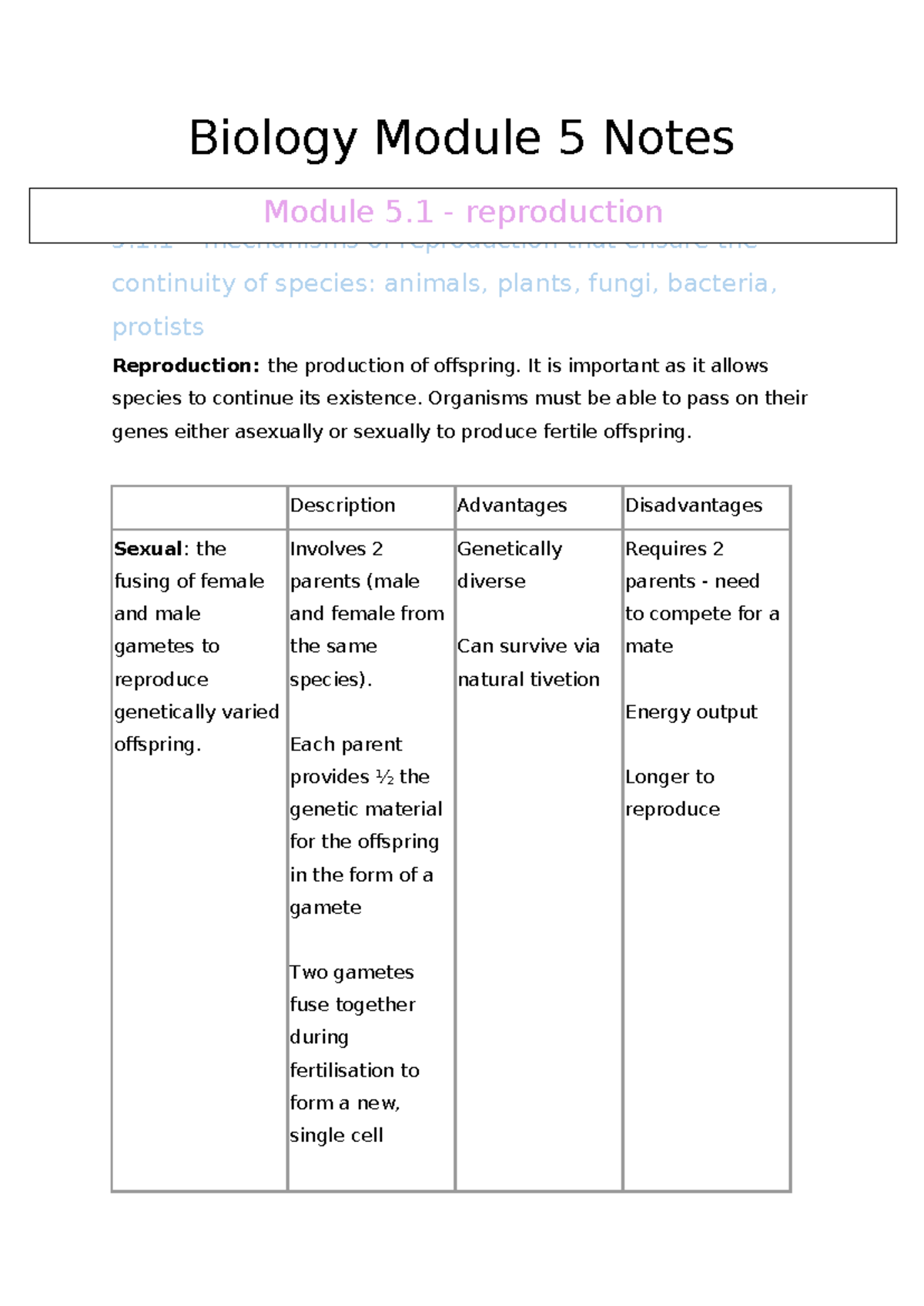 Biology Module 5 Notes: Reproduction Mechanisms & Cell Replication ...
