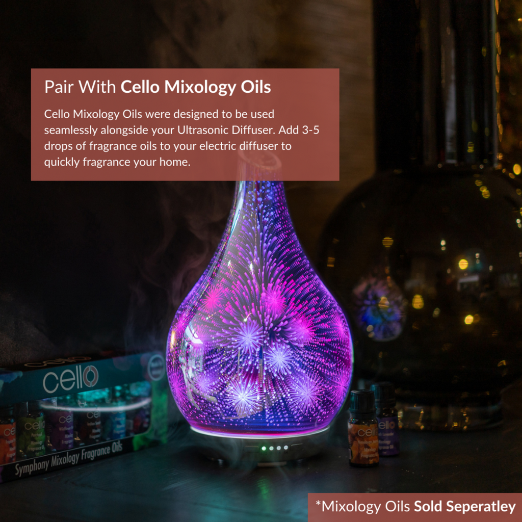 Cello Infinity 3D Glass Ultrasonic Diffuser with Harmony Mixology Oil ...