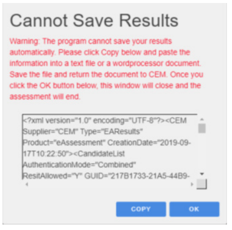 'Problem saving your results' warning message – CEM