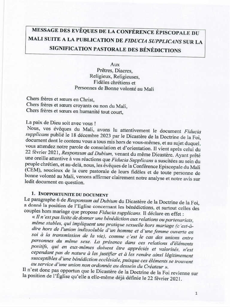 Scan Message de La CEM Suite À La Publication de Fiducia Supplicans | PDF