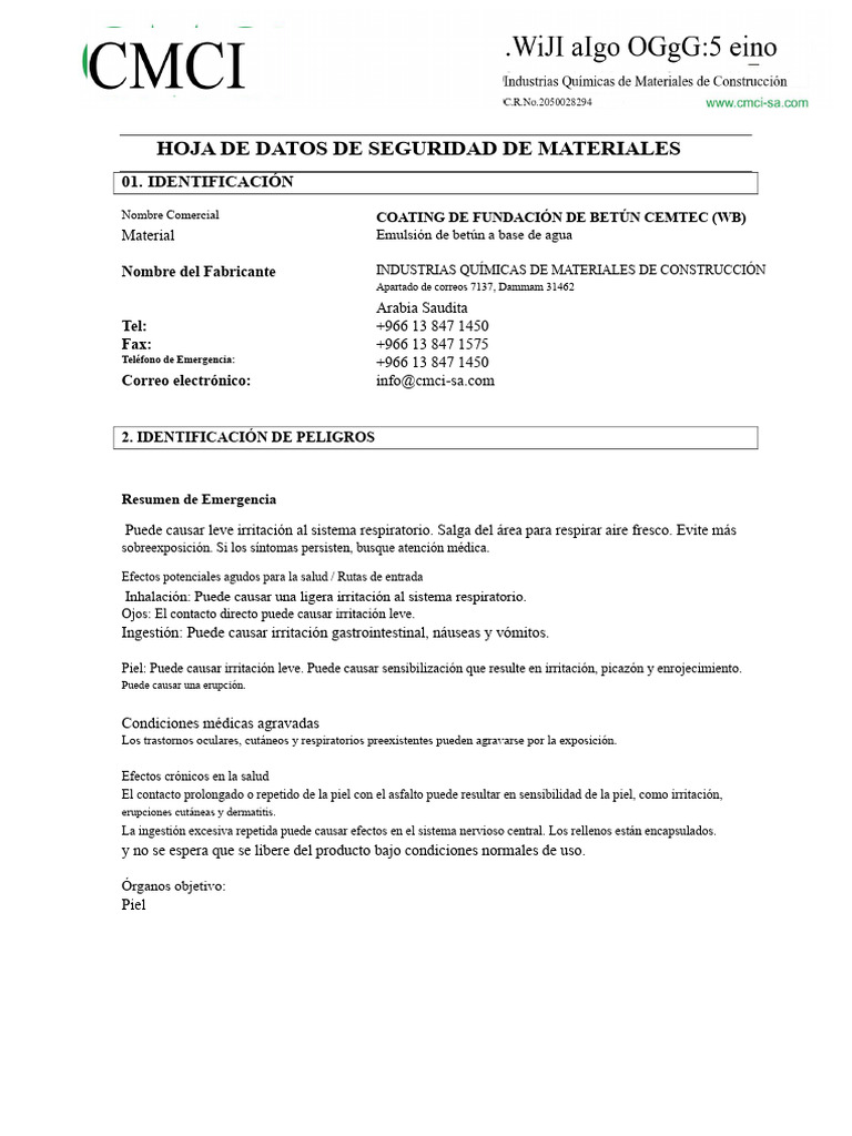 Cemtec Bitumen Foundation Coating (WB) MSDS | PDF | Personal Protective ...