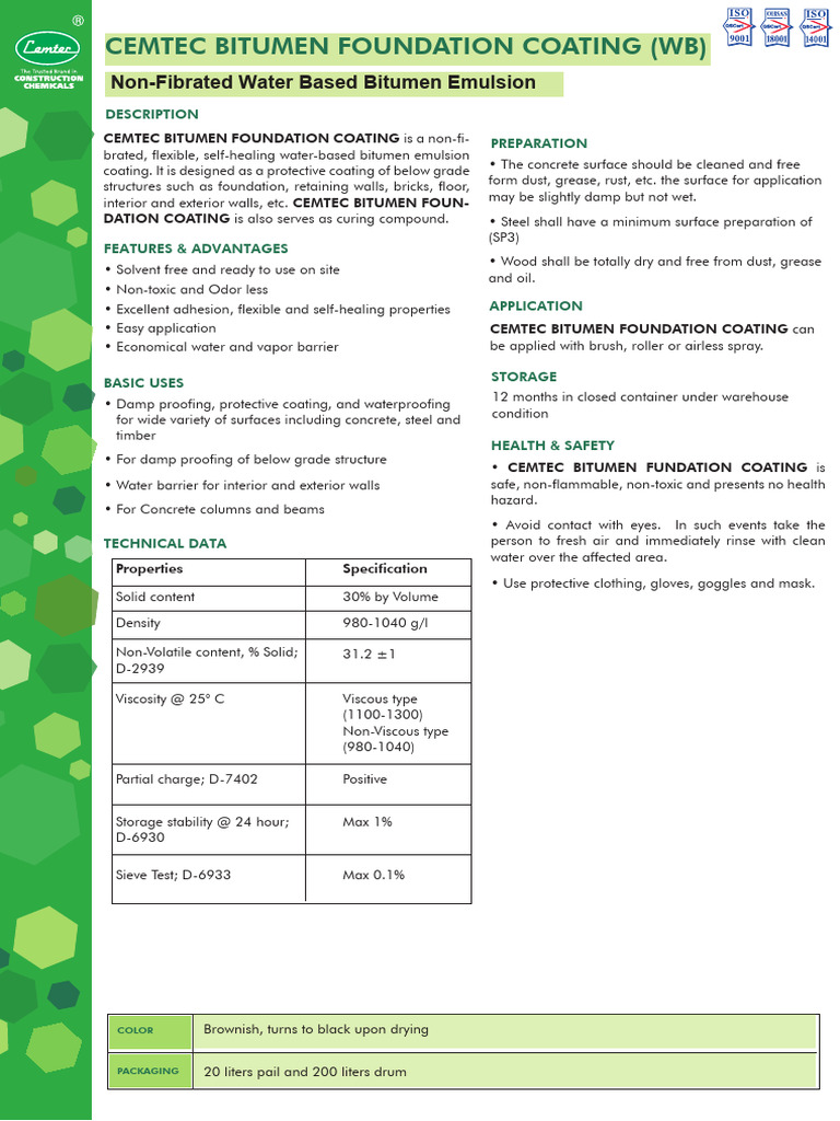 Cemtec Bitumen Foundation Coating (WB) TDS_removed | PDF