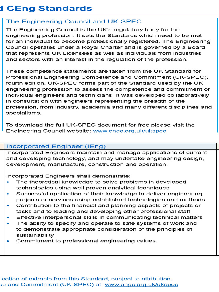Comparison Table For Engtech Ieng and Ceng Standards With Examples of ...