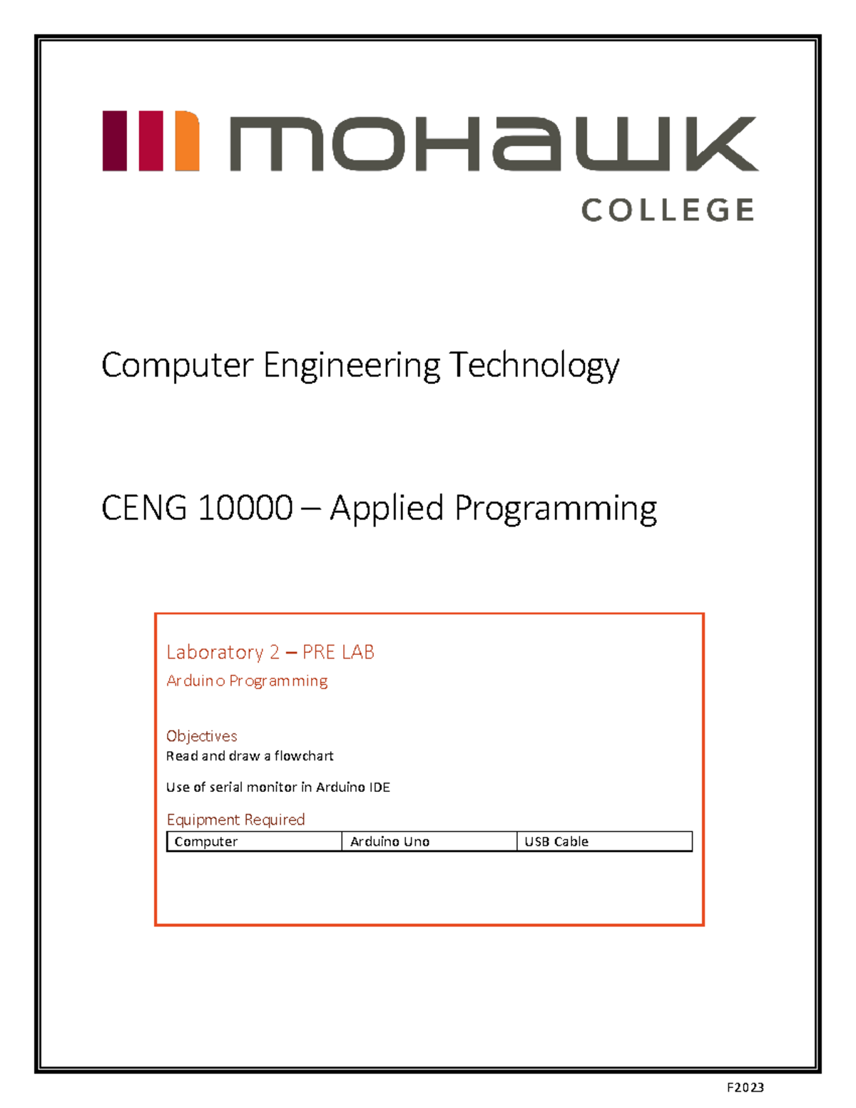 CENG 10000 Lab 2 Pre Lab: Arduino Flowchart & Programming Guide - Studocu