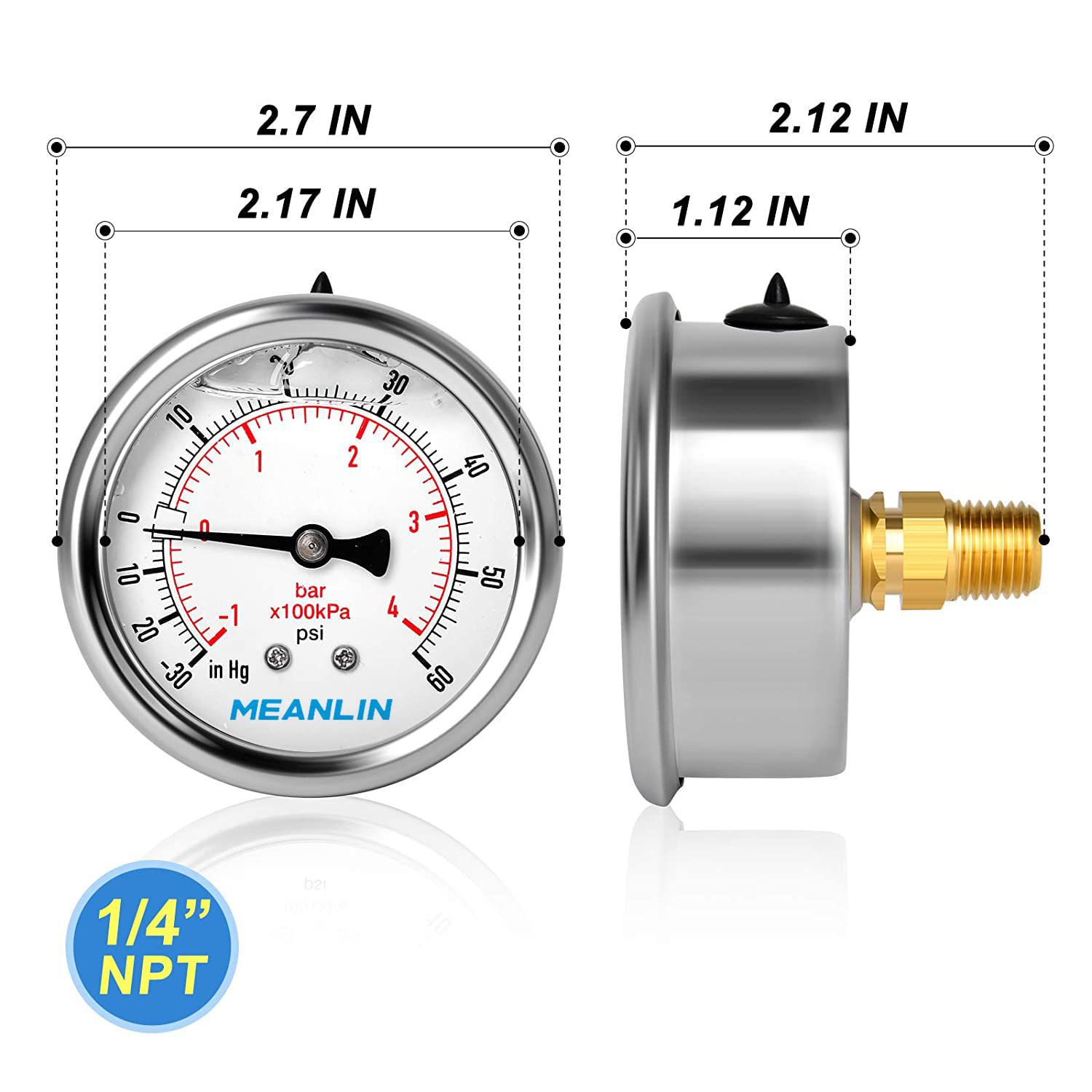 GetUSCart- MEANLIN MEASURE -30~60Psi Stainless Steel 1/4" NPT 2.5" FACE ...
