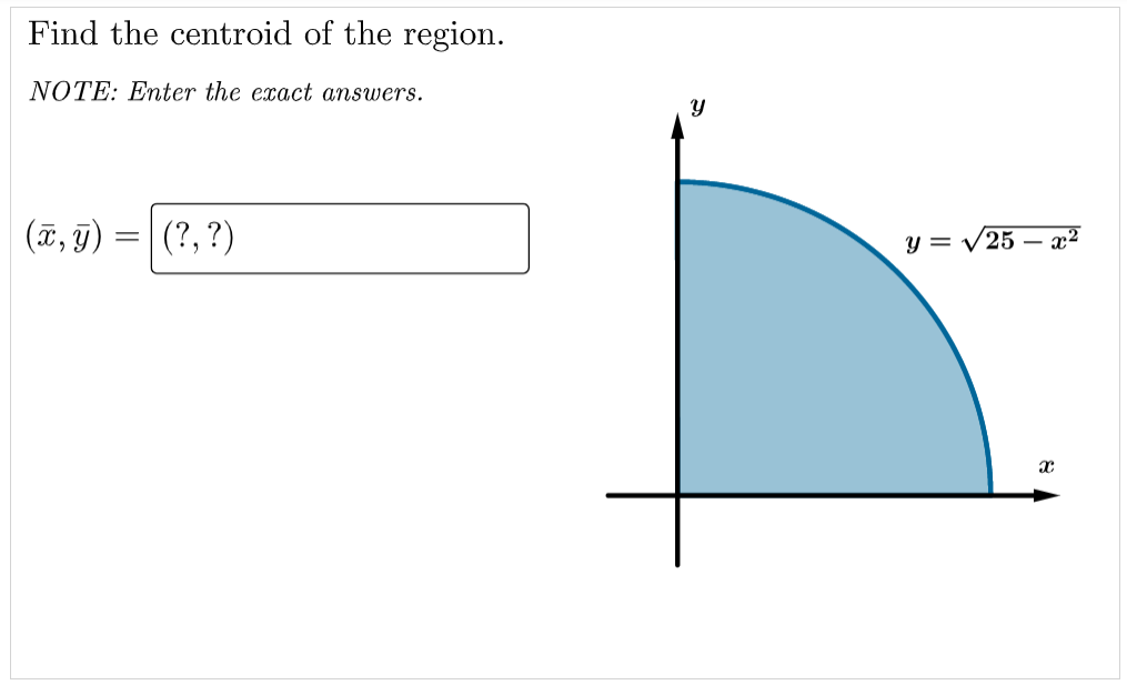 SOLVED: Find the centroid of the region. NOTE: Enter the exact answers.