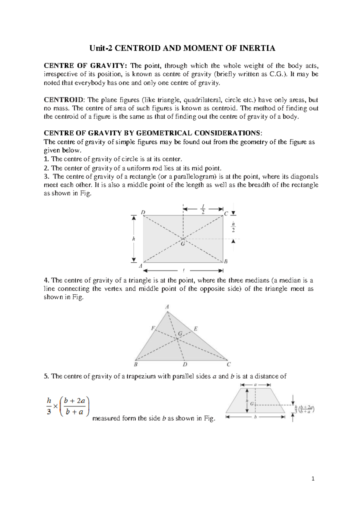 EM Unit-2 Notes - Unit- 2 CENTROID AND MOMENT OF INERTIA CENTRE OF ...