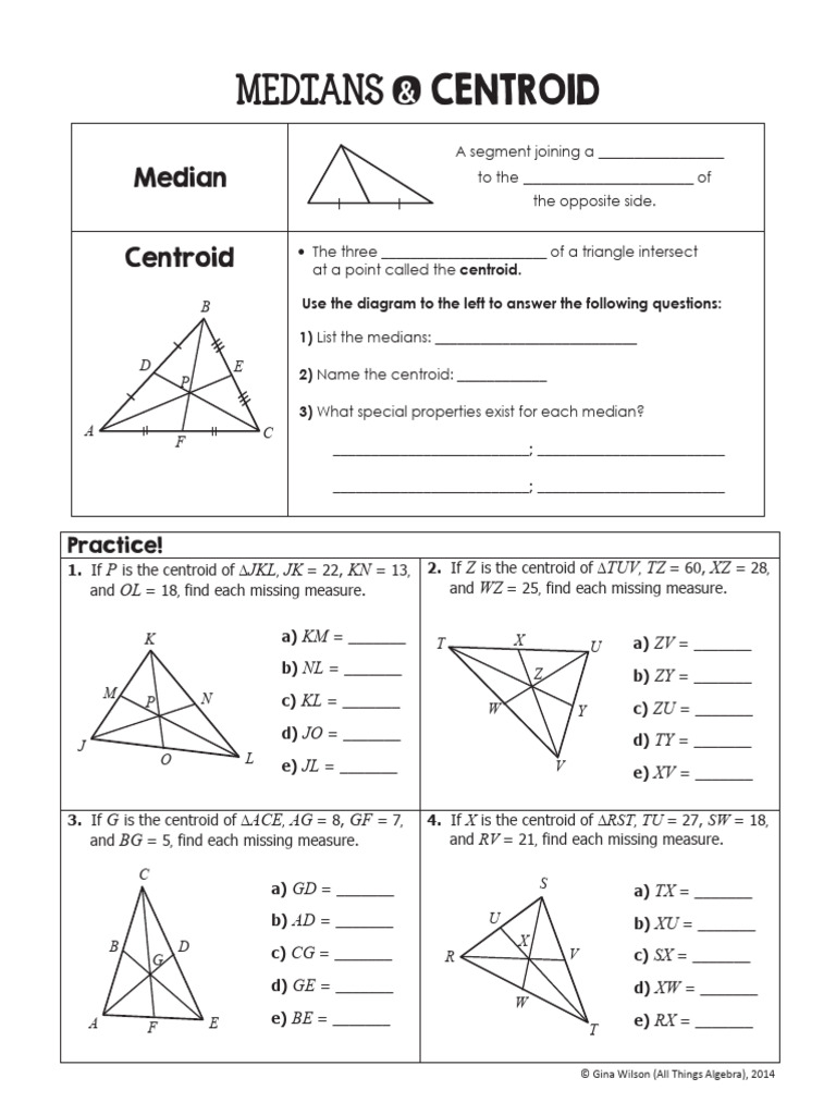 Triangle Centers: Medians and Centroids Notes, Practice, Mini Activity ...