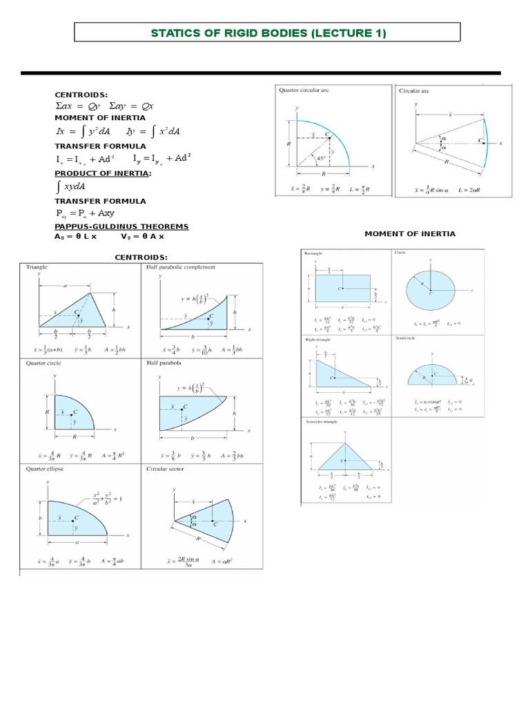 Centroids and Moment of Inertia Notes | PDF | Teaching Mathematics ...
