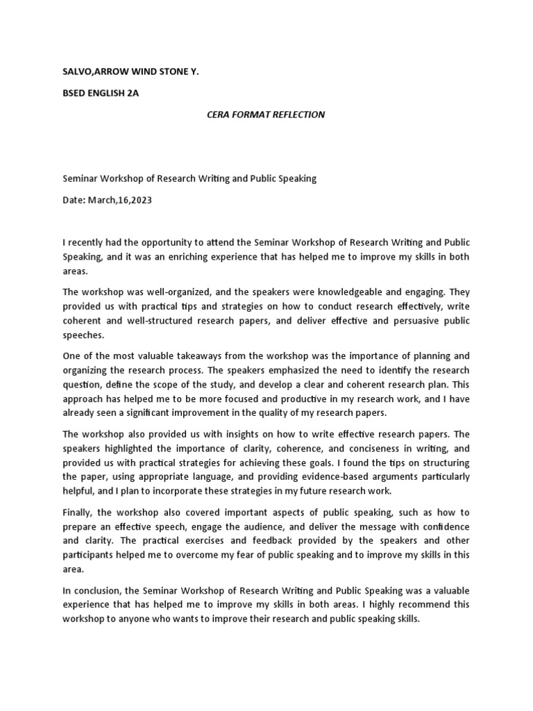 92764822114 - Hwhshe - Continue Reflection paper cera format example ...