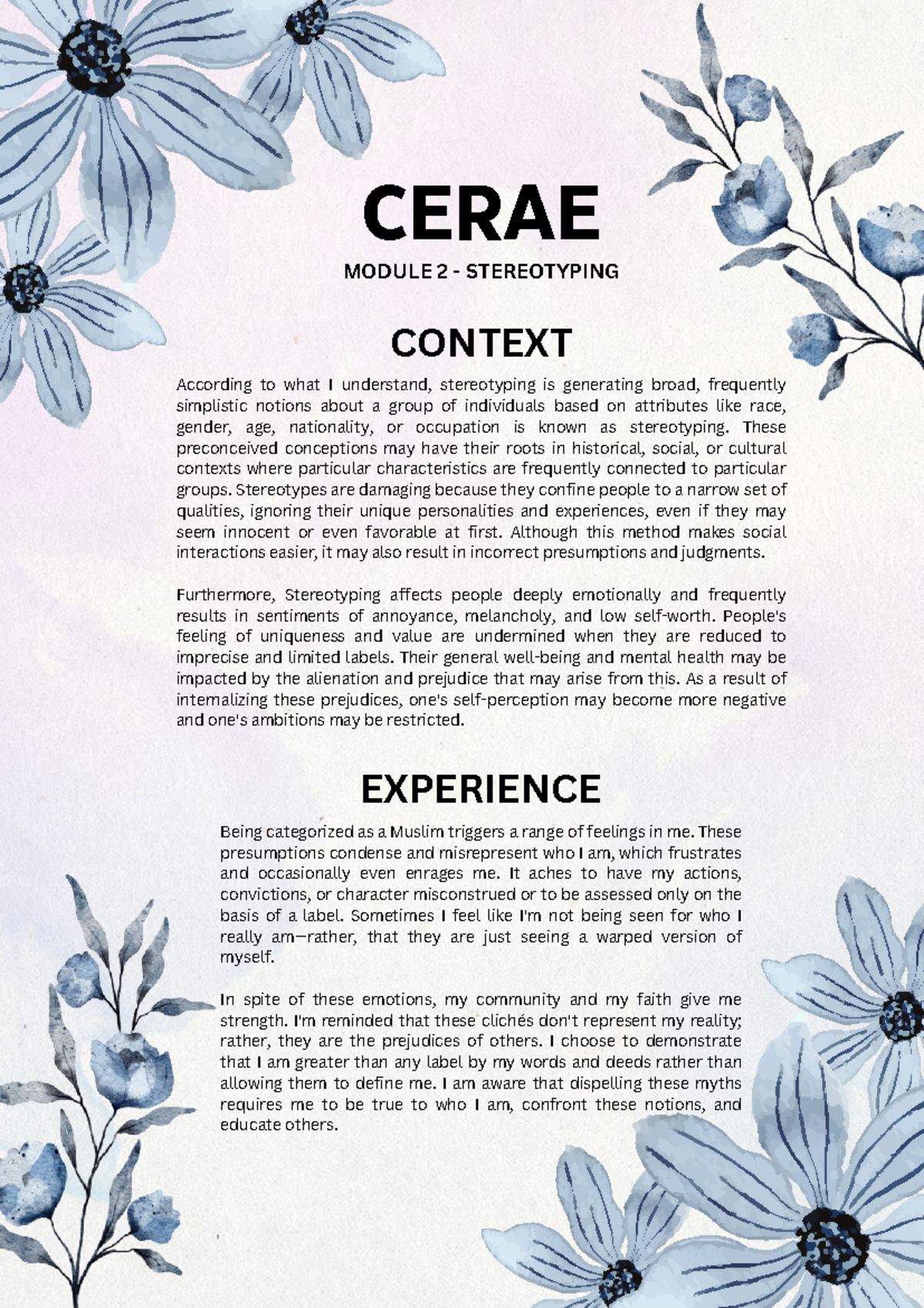 CERAE Reflection Format for 1st Period Coverage - Studocu