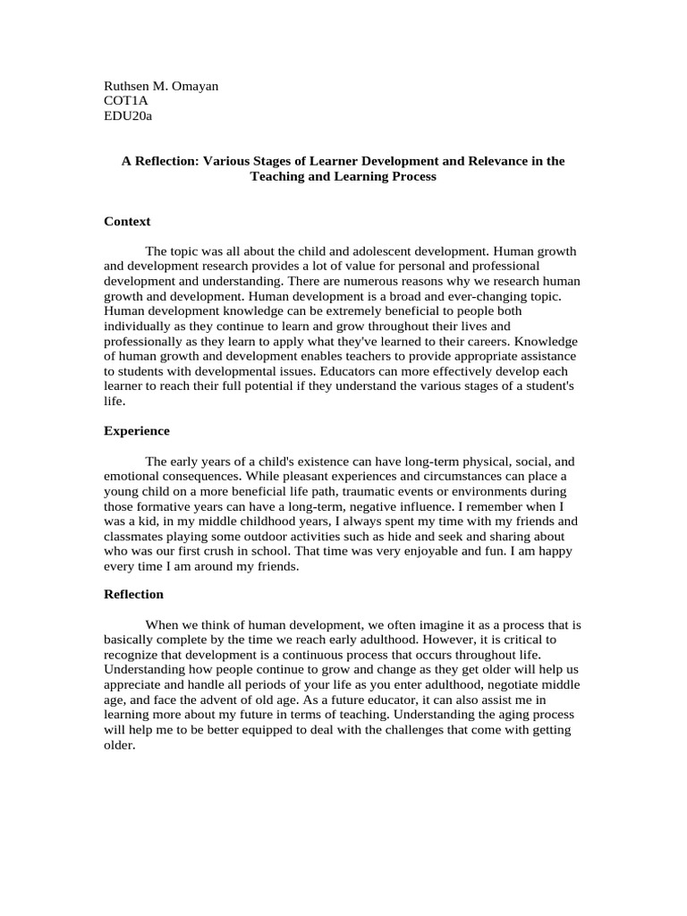 CERAE Reflection in Learning Domain 12.odt | PDF | Educational ...