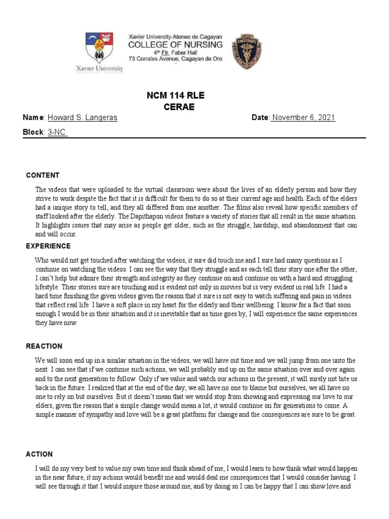 CERAE Reflection Format for 1st Period Coverage - Studocu
