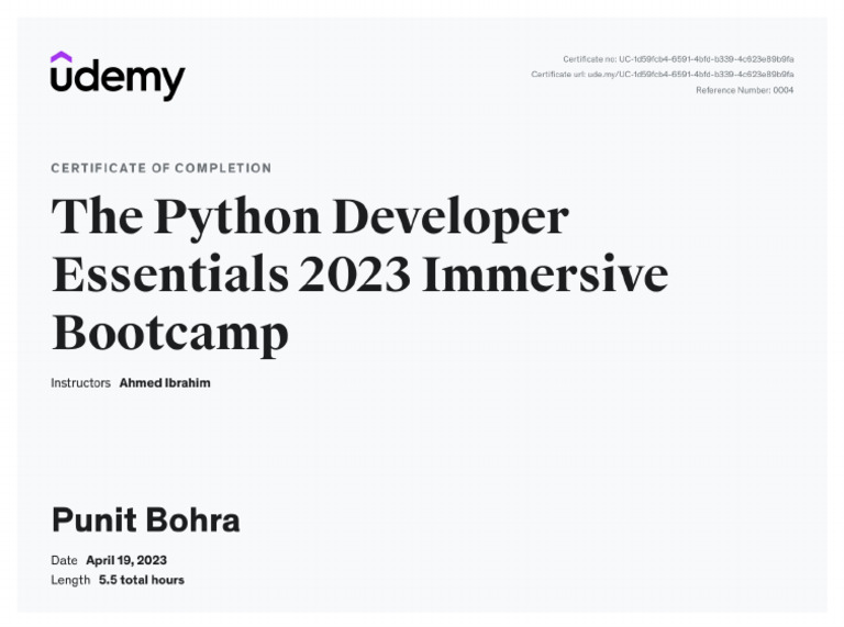 UDEMY Python Certificate | PDF