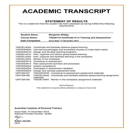 Certificate IV in Training and Assessment TAE40110 Transcript P1 | PDF ...