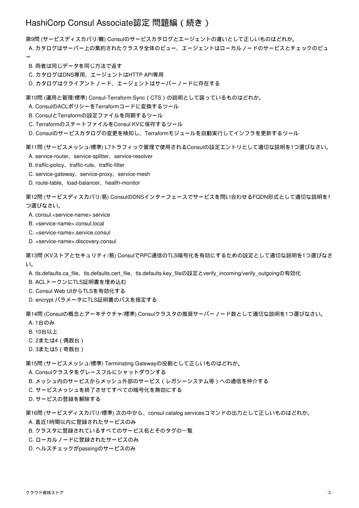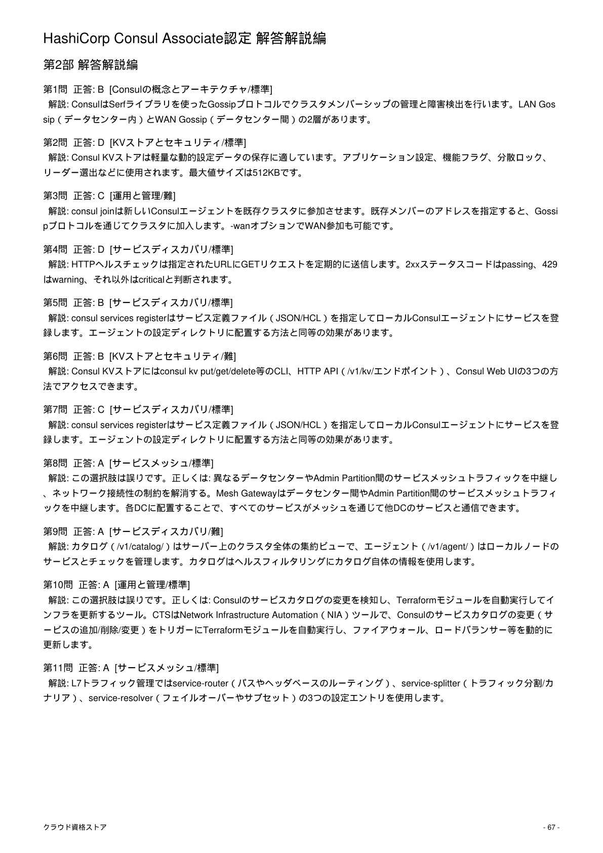 【CONSUL】HashiCorp Certified: Consul Associate 模擬試験500問 解答・解説付き|クラウド資格ストア