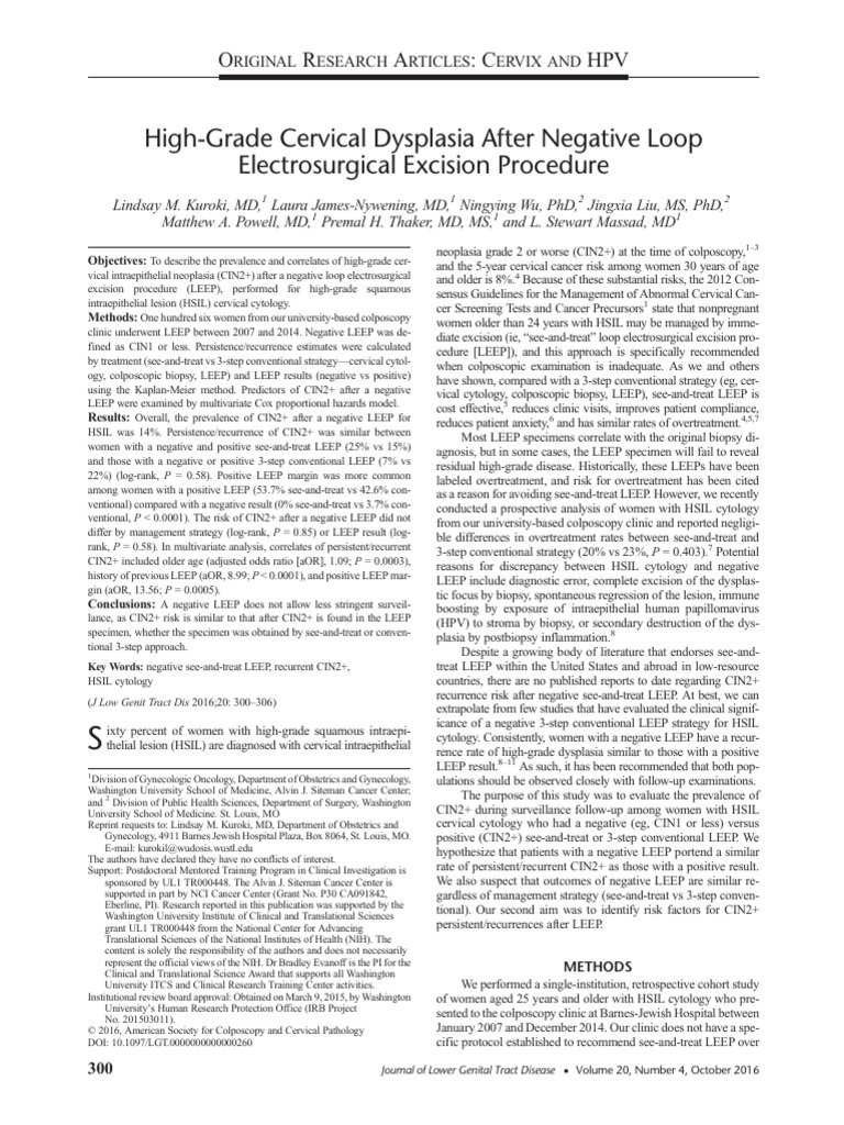 High-Grade Cervical Dysplasia After Negative Loop Electrosurgical ...