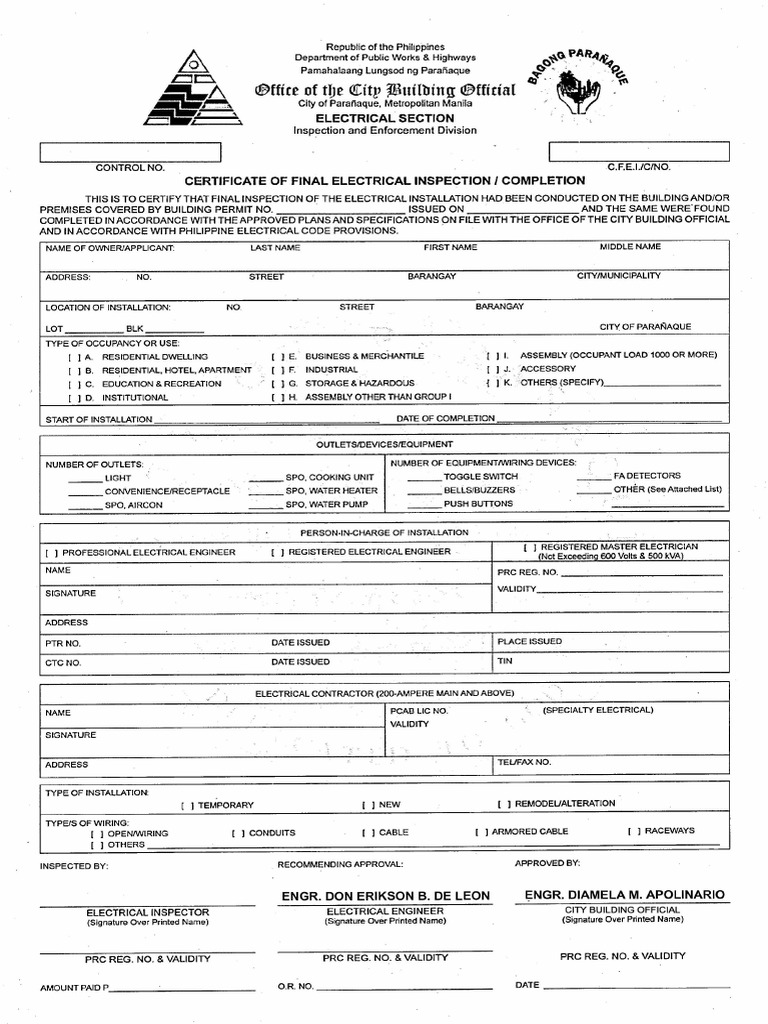 CertificateofFinalElectricalInspection Completion CFEI | PDF ...