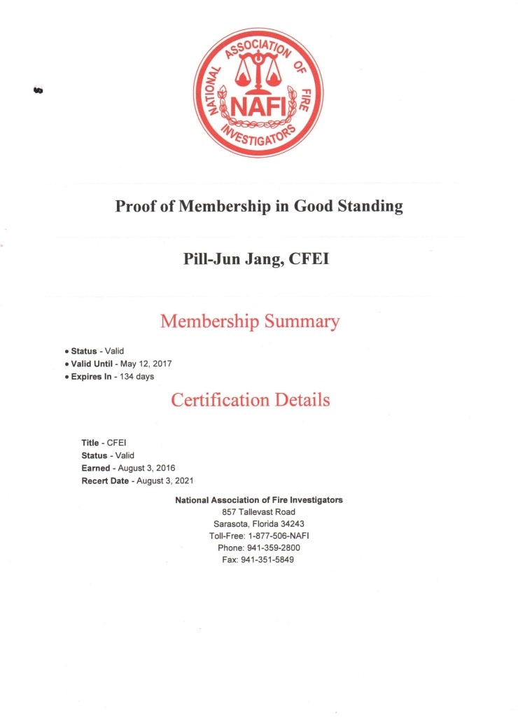 CFEI;Certified Fire and Explosion Investigator 미국화재폭발조사관 자격. 교육수료 및 자격 ...