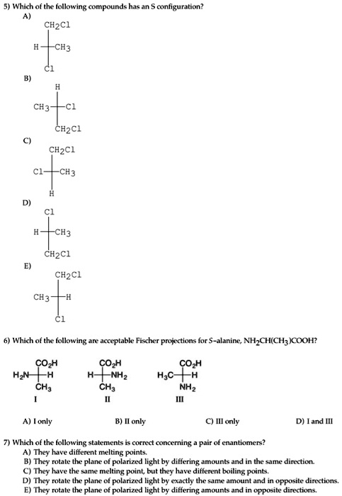 12) Which of the following compounds has an S configuration? (3 points ...