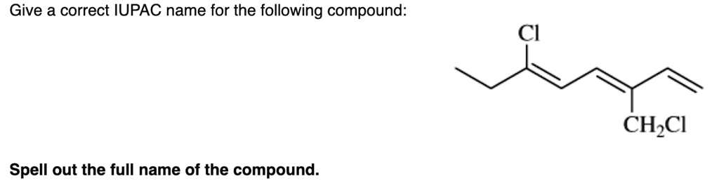 Give a correct IUPAC name for the following compound: Cl Spell out the ...