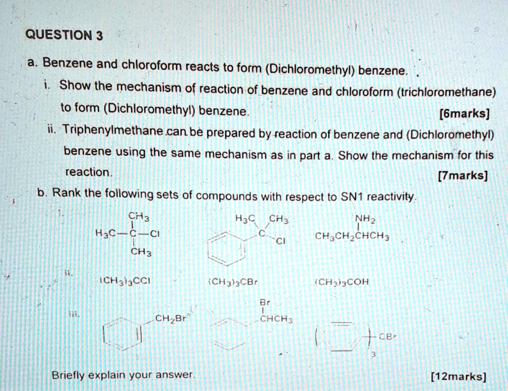 SOLVED: Texts: QUESTION 3 a. Benzene and chloroform react to form ...