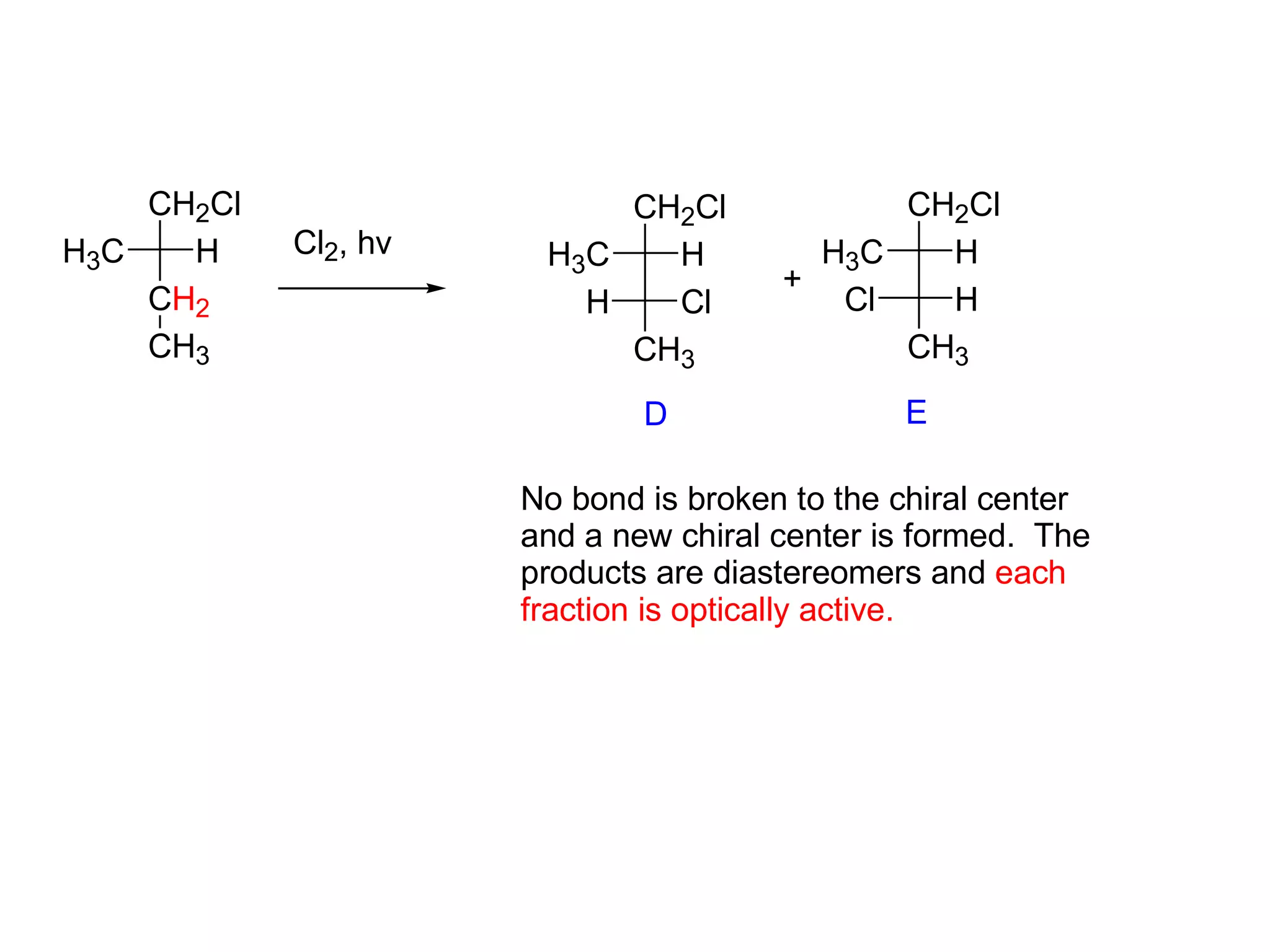 Consider the reaction shown at the right: CH3-CH2-CH3 Cl2 hv CH3-CH2 ...