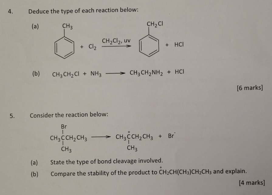 Solved 4. Deduce the type of each reaction below: (a) CH3 | Chegg.com