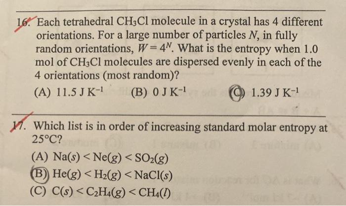 Solved 16. Each tetrahedral CH2Cl molecule in a crystal has | Chegg.com