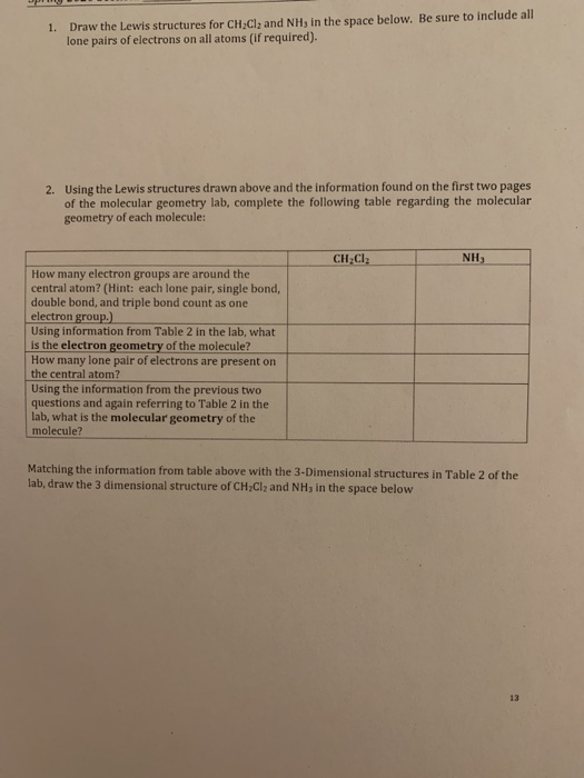 Solved 1. Draw the Lewis structures for CH2Cl, and NH, in | Chegg.com